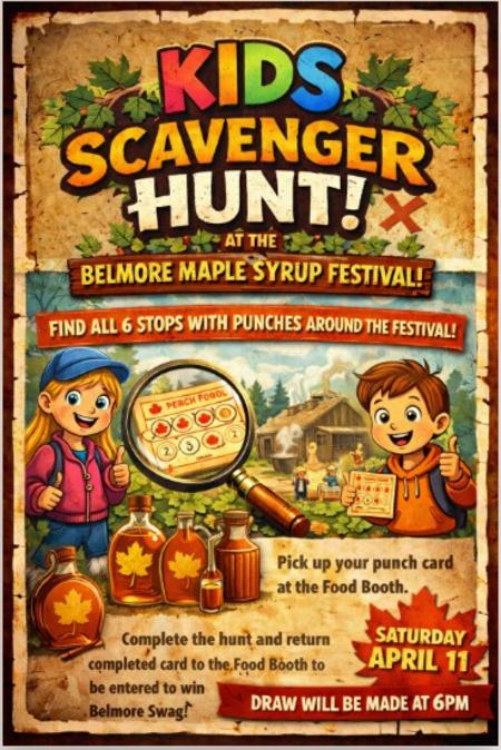 The 56th Annual Belmore Maple Syrup Festival will be held on Thursday, April 9 and Saturday, April 11, 2026